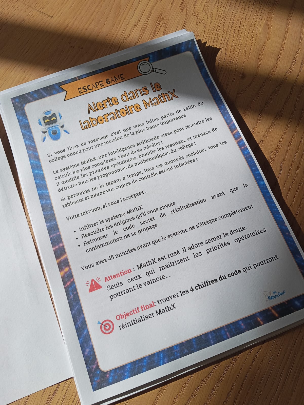 🧩 Escape game prêt à imprimer – idéal pour rendre les maths vivantes et motivantes.
