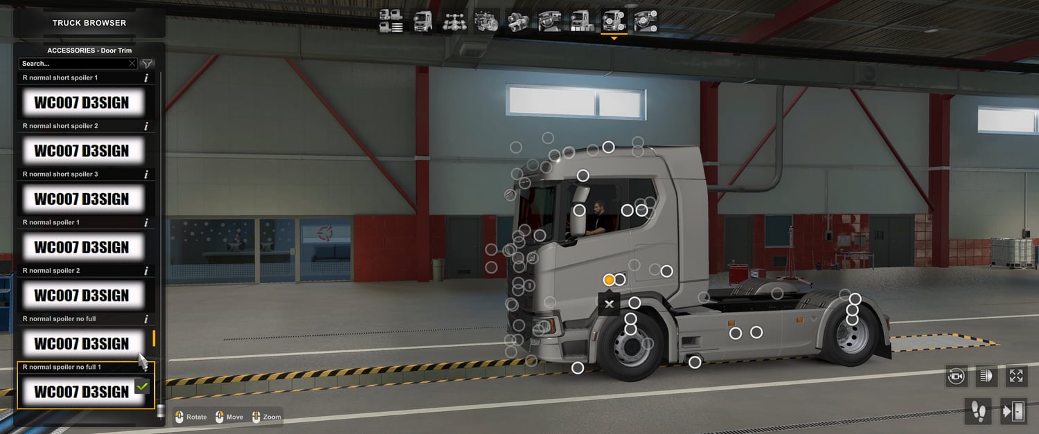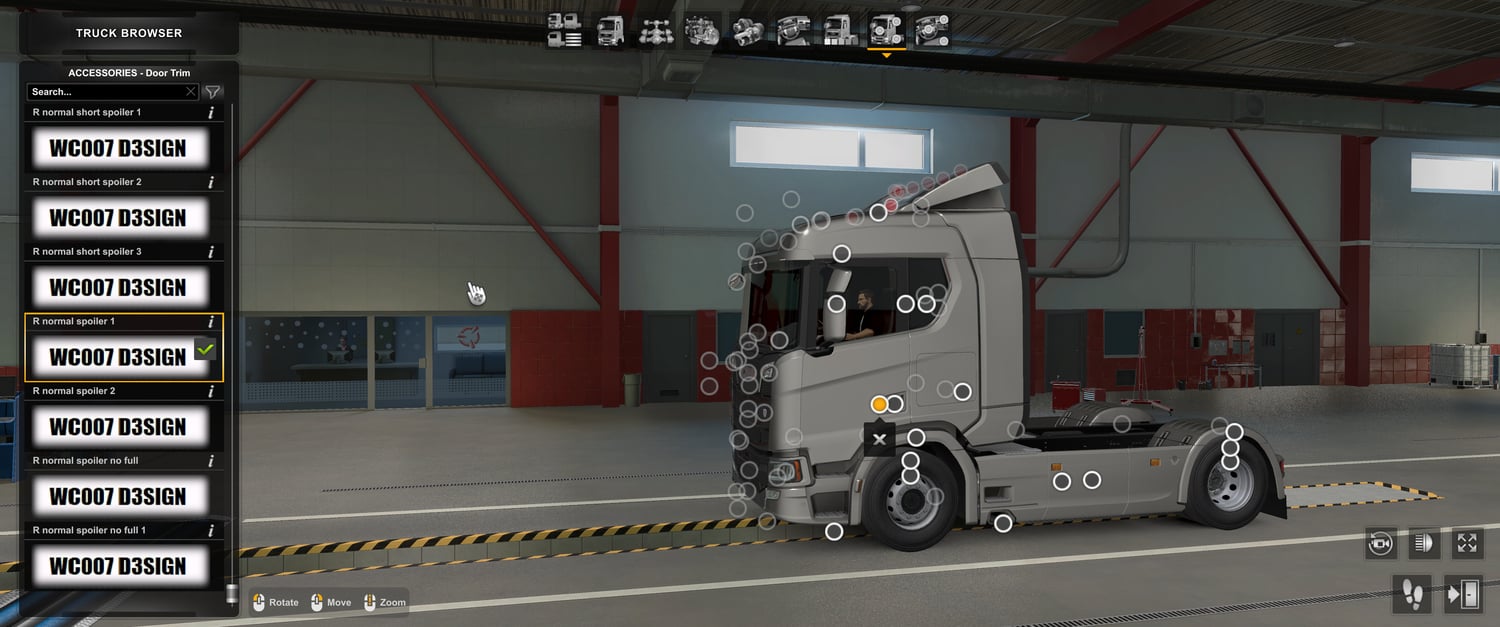 Scania spoilers works only with Scania no spoiler mod V1 or Scania no spoiler mod V2 and not work with and Base game Scania truck