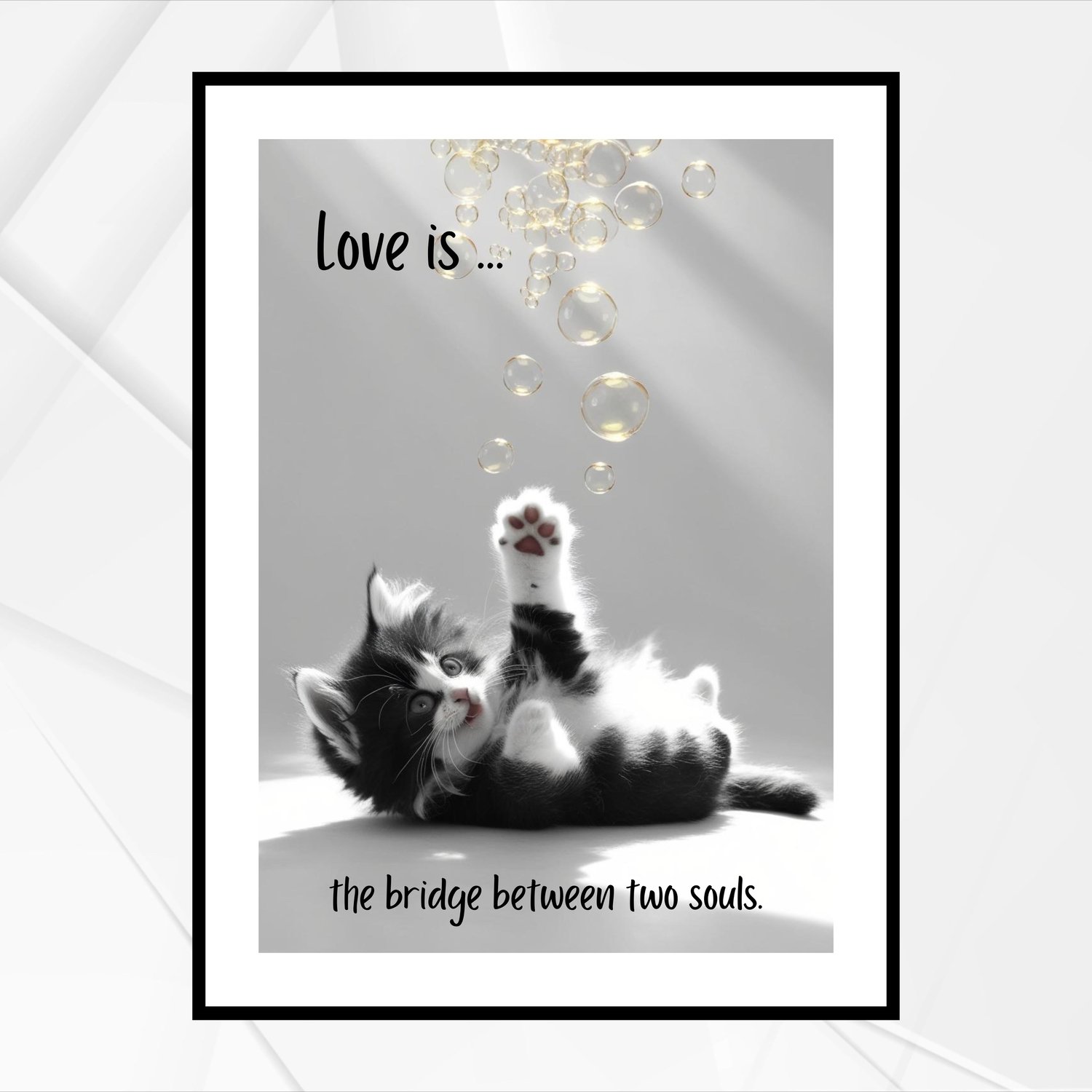 Kitten Love Quote Romantic Artwork Heartwarming Love Is Quote Inspirational Cute Animal Decor Feline Love Poster Digital Wall Art Instant Download - JPG PNG PDF