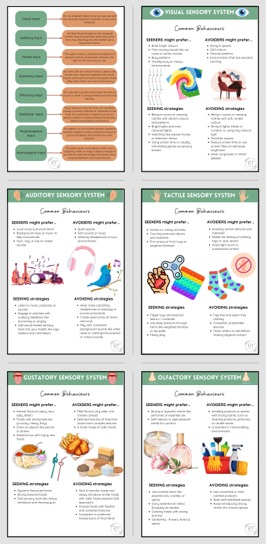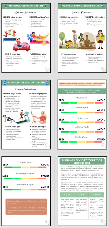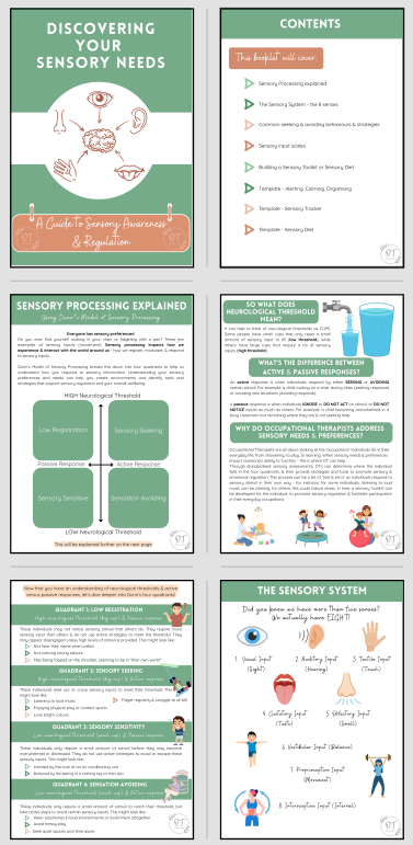It's a key resource for therapists to assist clients to develop sensory toolkits or sensory diets, to explain sensory processing to families, or for people to work through the booklet on their own to explore their own sensory needs & preferences.