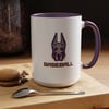 - Two sizes / colors: 11oz. and 15oz / purple and black