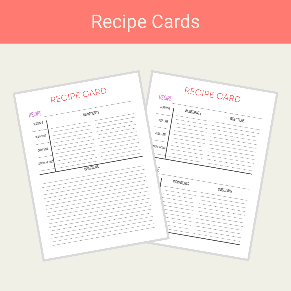 - Recipe Card - 2 per page