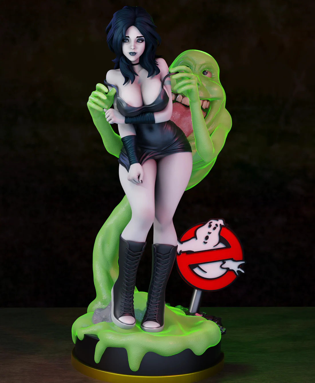 The Spectral Hunter: A sultry, gothic crossover featuring slime-themed elements and bold posing.