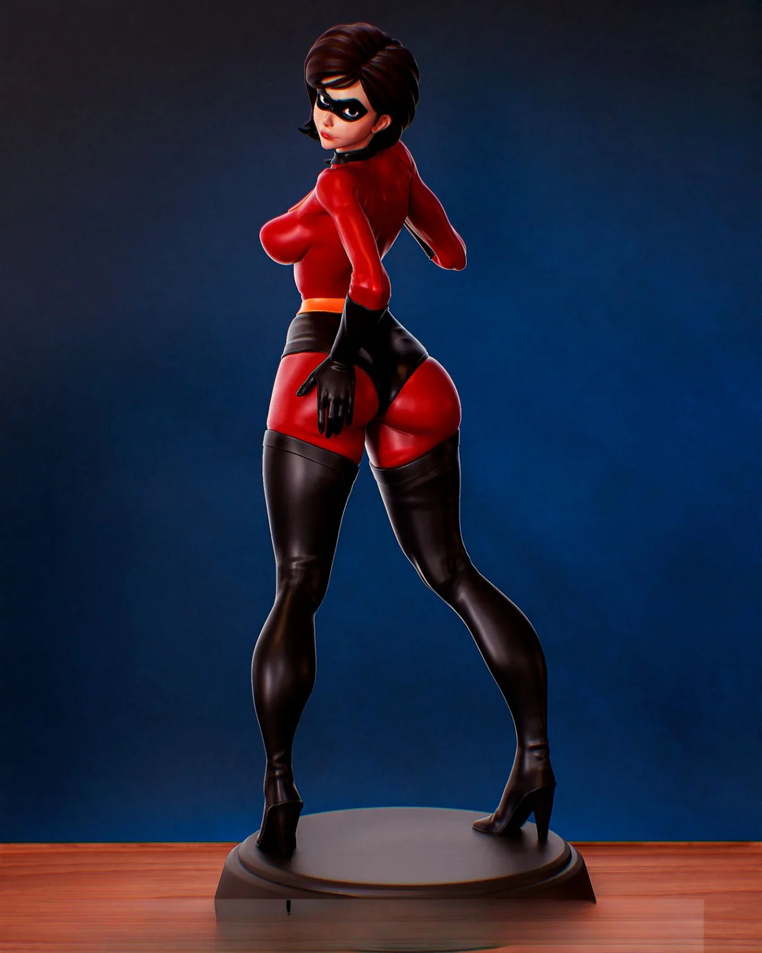 The Flexible Matriarch (Elastigirl): Highlighting extreme suit fidelity and athletic contours.