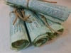 In sets of 5, these watercolor washed pages are from a 1953 vintage dictionary. Crinkled while wet, they would complement almost any paper craft project. The pages measure 8.25 x 5.25 inches of text, plus the margins.