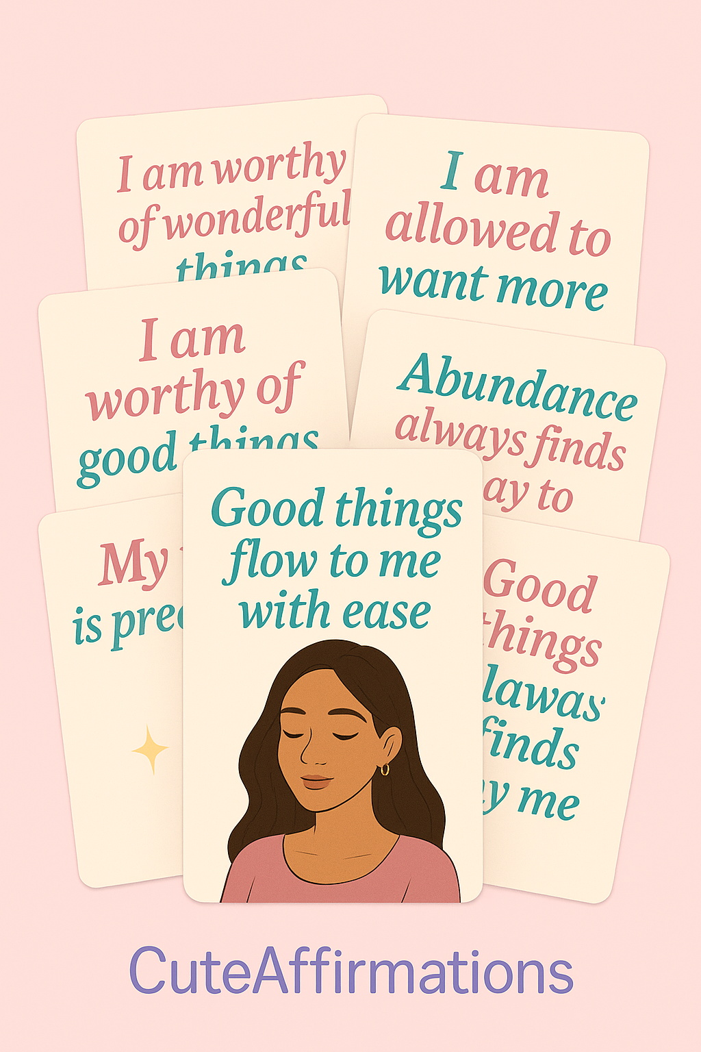 Cute Affirmations – Wealth & Wellness Mini Deck (6 Cards) ✨