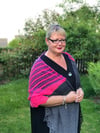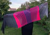 Holywell Bay is worked sideways with short rows, lace stripes and a simple lace pattern in the centre. The pattern could be worked with more or fewer colours from your stash.