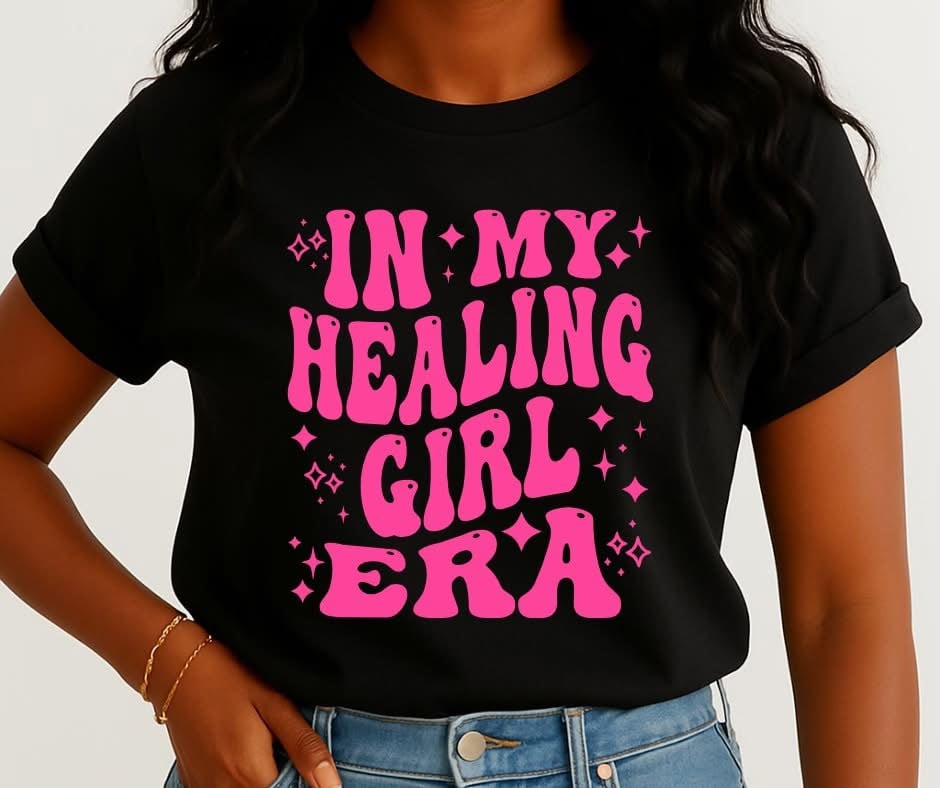 Step into your season of growth and self-love with our bold “In My Healing Girl Era” tee. Designed with eye-catching hot pink retro lettering on a classic black shirt, this statement piece is perfect for anyone embracing their journey of healing, empowerment, and good vibes.