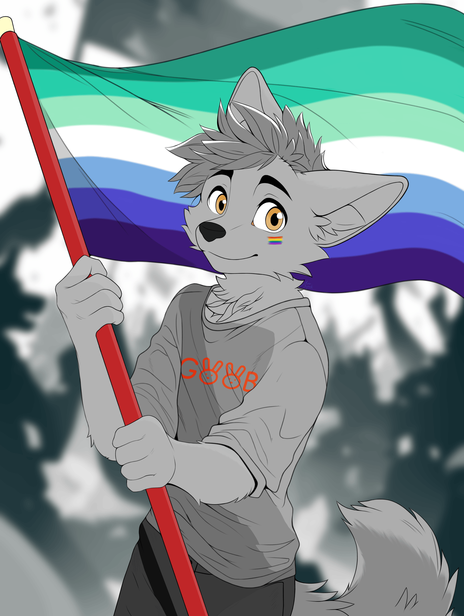 The flag color can be changed as needed, the Krita file contains 3 premade flags: Bi, Gay and Trans.