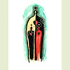This printable modern wall art depicts twin beings or souls enclosed within a protective oversoul. The main colors are ocher (brownish red), light pastel yellow and light mint green. It was designed to affirm a deep spiritual connection between two beings and would make a nice gift for someone with metaphysical interests or with whom you have a spiritual connection.