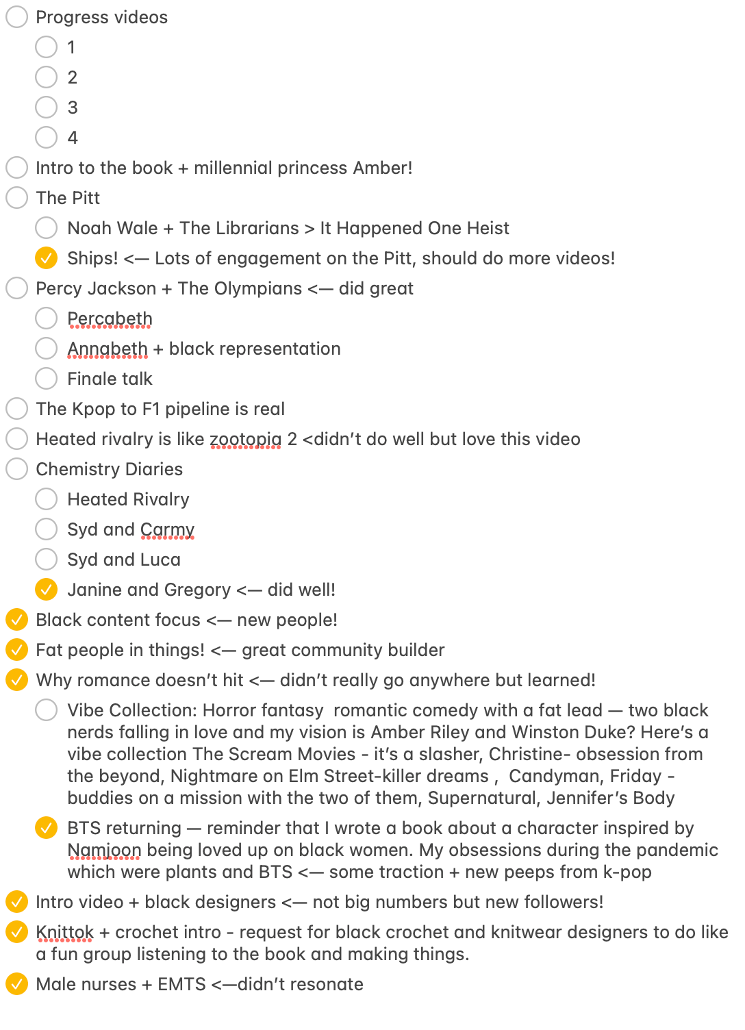 The rest? They're about the things that would attract the KIND of person who would enjoy my book. I'll teach you to develop a schedule but I'm lazy and just put everything in a list and check them off as I record. I do mostly tiktok and instagram but you can do whatever!