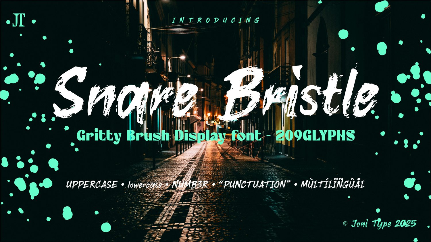 Perfect for designs that demand attention, Snare Bristle brings a rebellious, edgy personality into every word — making it ideal for posters, branding, apparel and social media graphics.