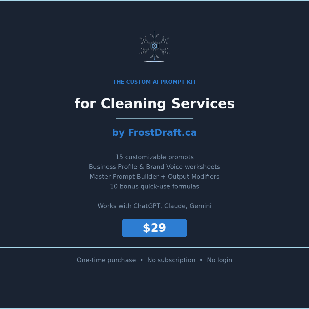 A customizable AI prompt system for residential and commercial cleaning companies that want clearer, faster, more effective marketing.