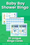 ๐ถ๐ Get ready to ๐ the little guy's arrival in style with this fun ๐ Baby Boy Shower Bingo Game! It's the perfect way to add some ๐คฃ to the party, with a calling card, marker card, and some good ol' fashioned bingo action! ๐ Get it printed and ready for the big day - ๐คฉ your guests will thank you! ๐ You'll recieve 12 PDF pages that include 20 unique boy baby shower bingo cards, calling card and bingo markers.ย