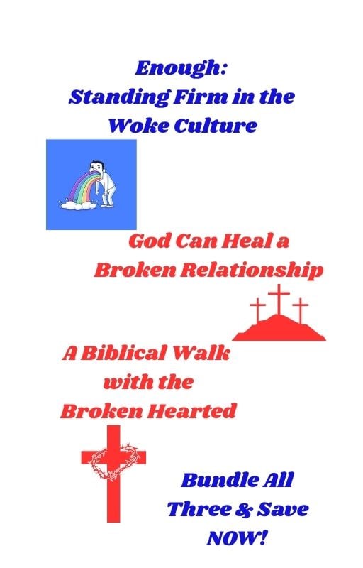 Get all three eBooks and learn how to heal broken relationships, stand firm against the woke culture and support the broken hearted all with biblical principles that God intended for us to use in our daily lives.