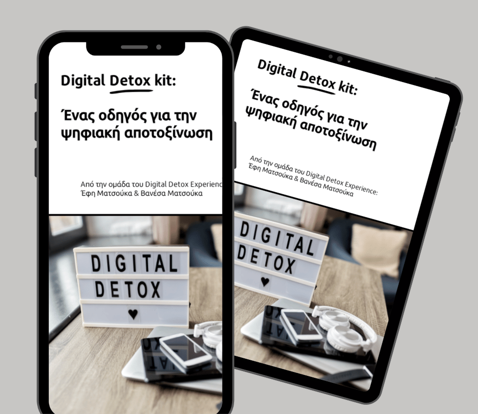 Το Digital Detox E-book | Basic kit είναι ένας self-guided οδηγός με την μορφή e-book, 89 σελιδών, που φιλοδοξεί να σου γνωρίσει την φιλοσοφία προσέγγισης του θέματος, χωρίς απαραίτητα να θίγει θέματα ή να προτείνει λύσεις που δεν είχες ξανασκεφτεί.