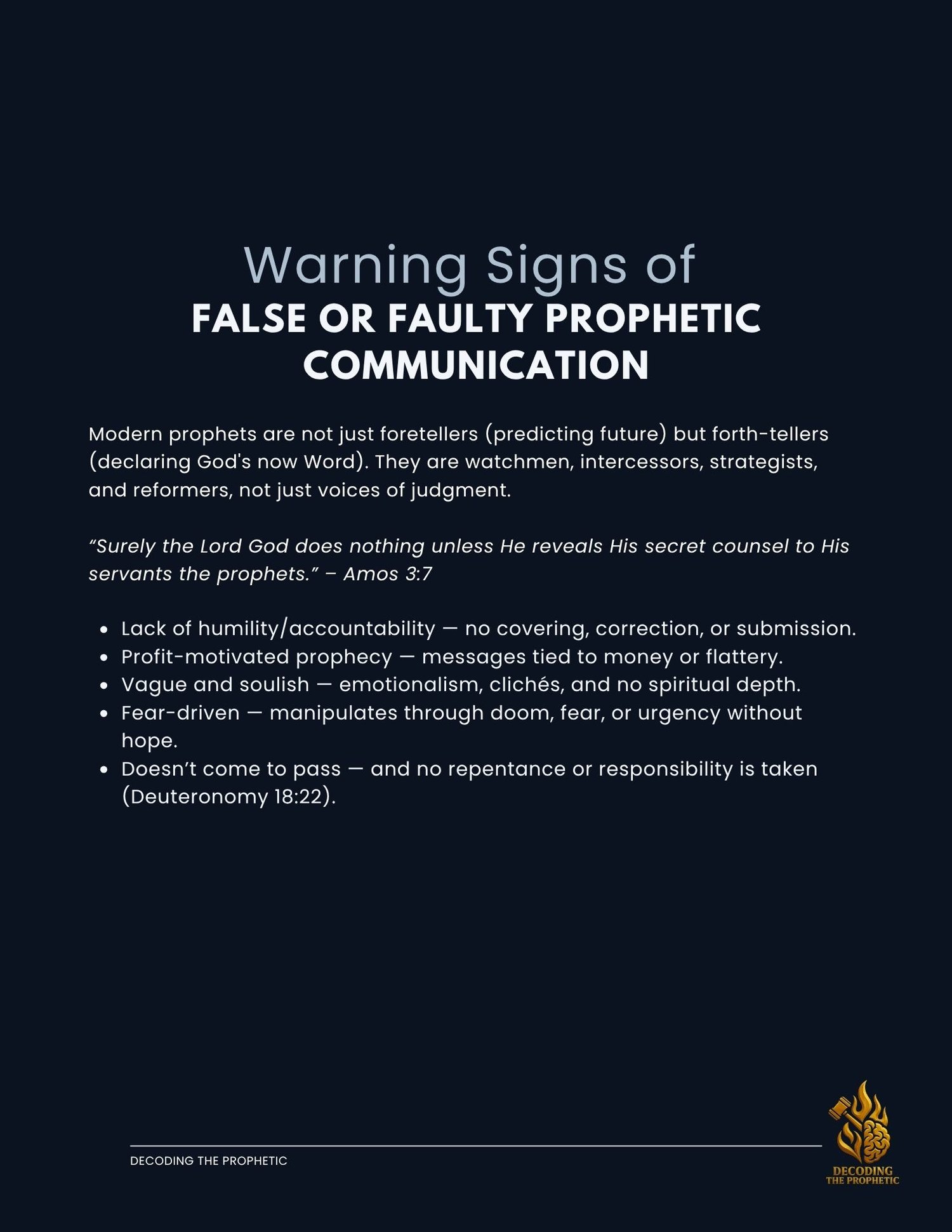 - How to identify and avoid false or manipulative prophecy
