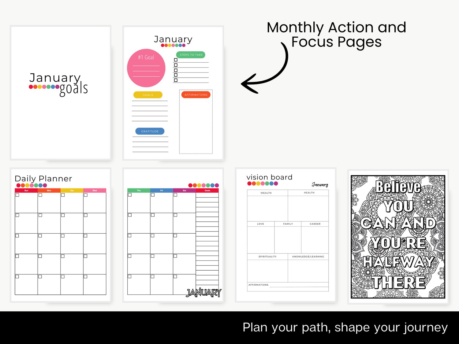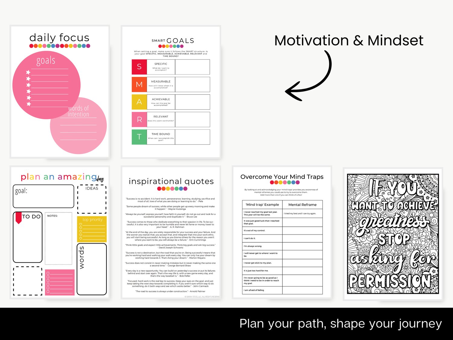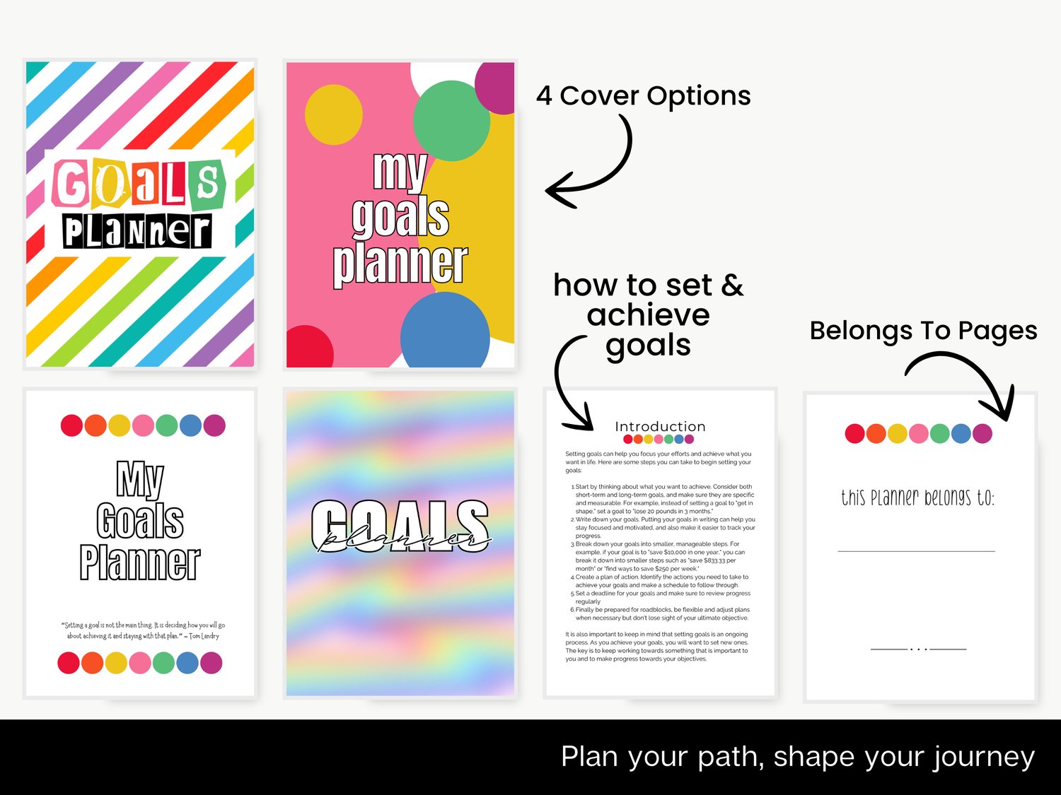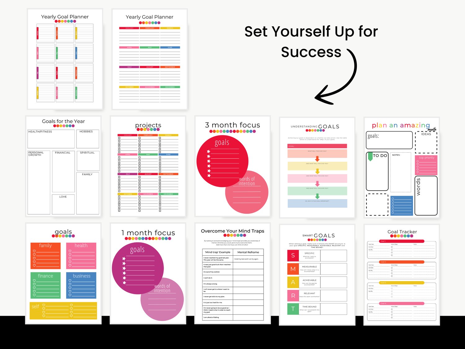 Goal Setting Pages: Break down long-term goals into manageable steps.