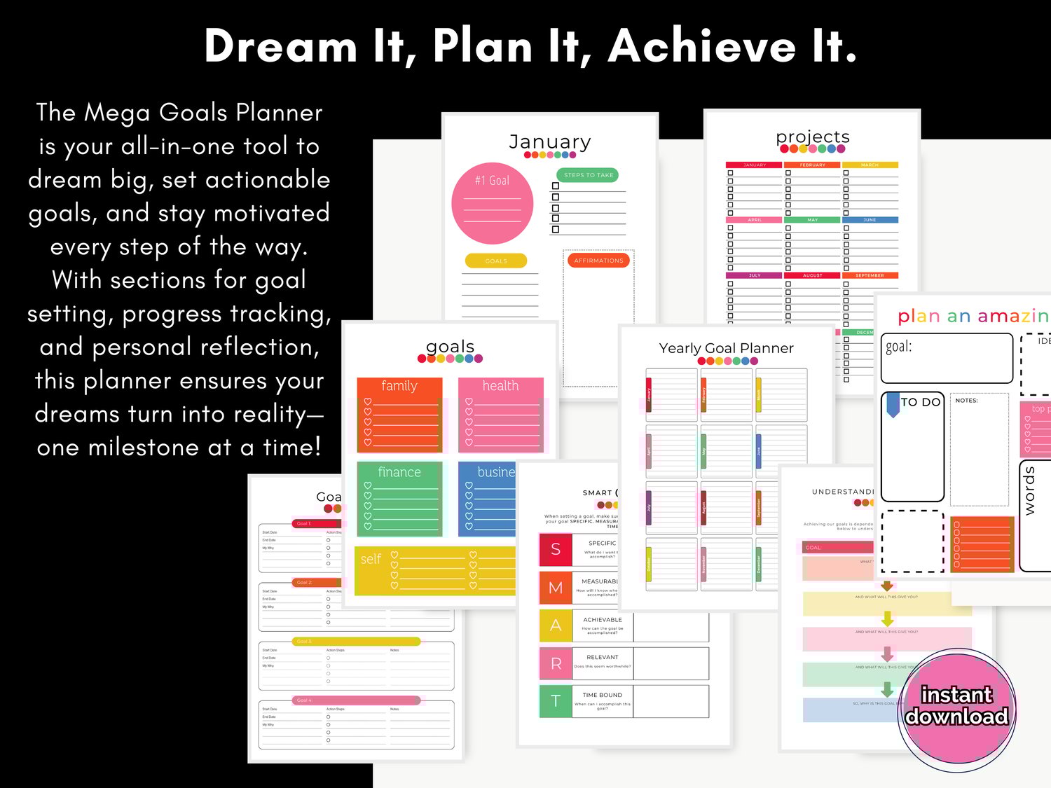 Turn your dreams into achievable milestones with the Mega Goals Planner!