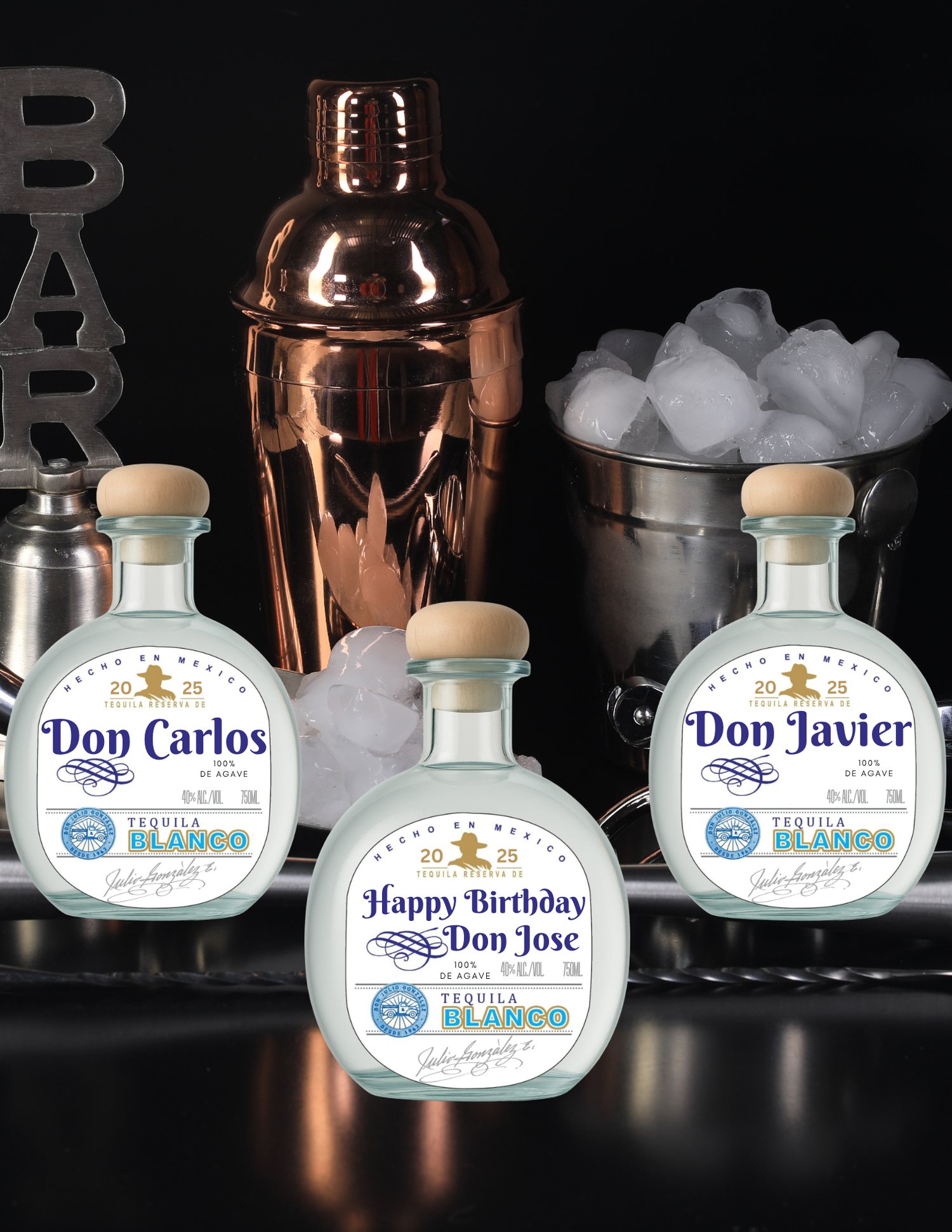 Label fits most standard tequila bottles but is fully resizable in Canva