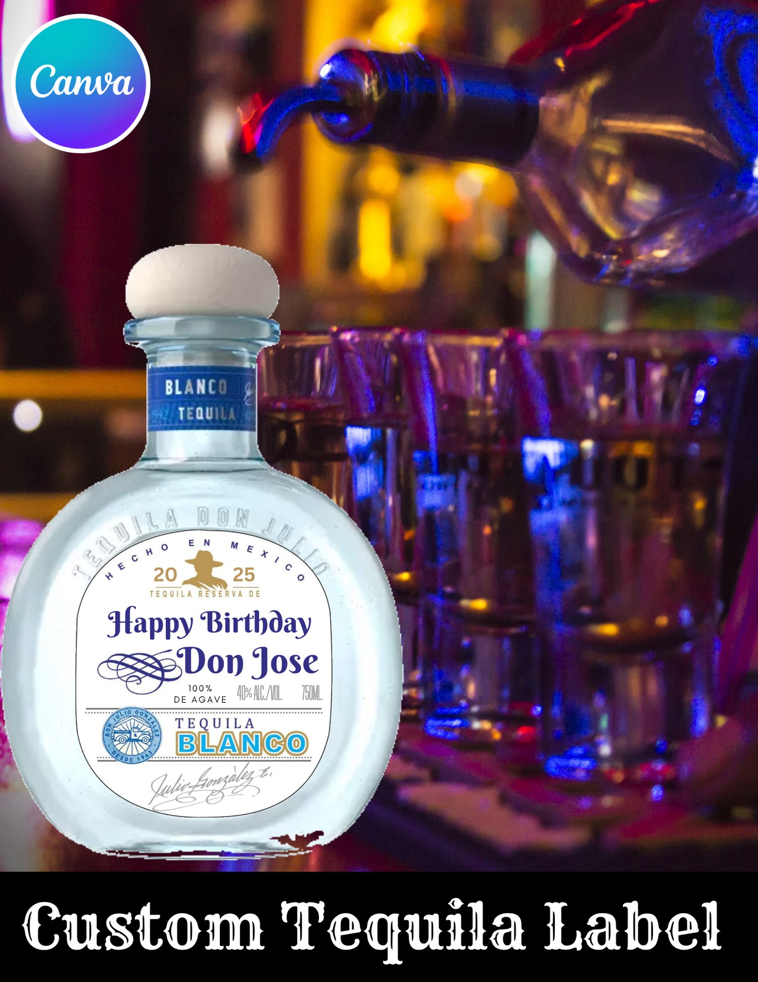 Sized to fit standard tequila bottles (fully resizable in Canva)