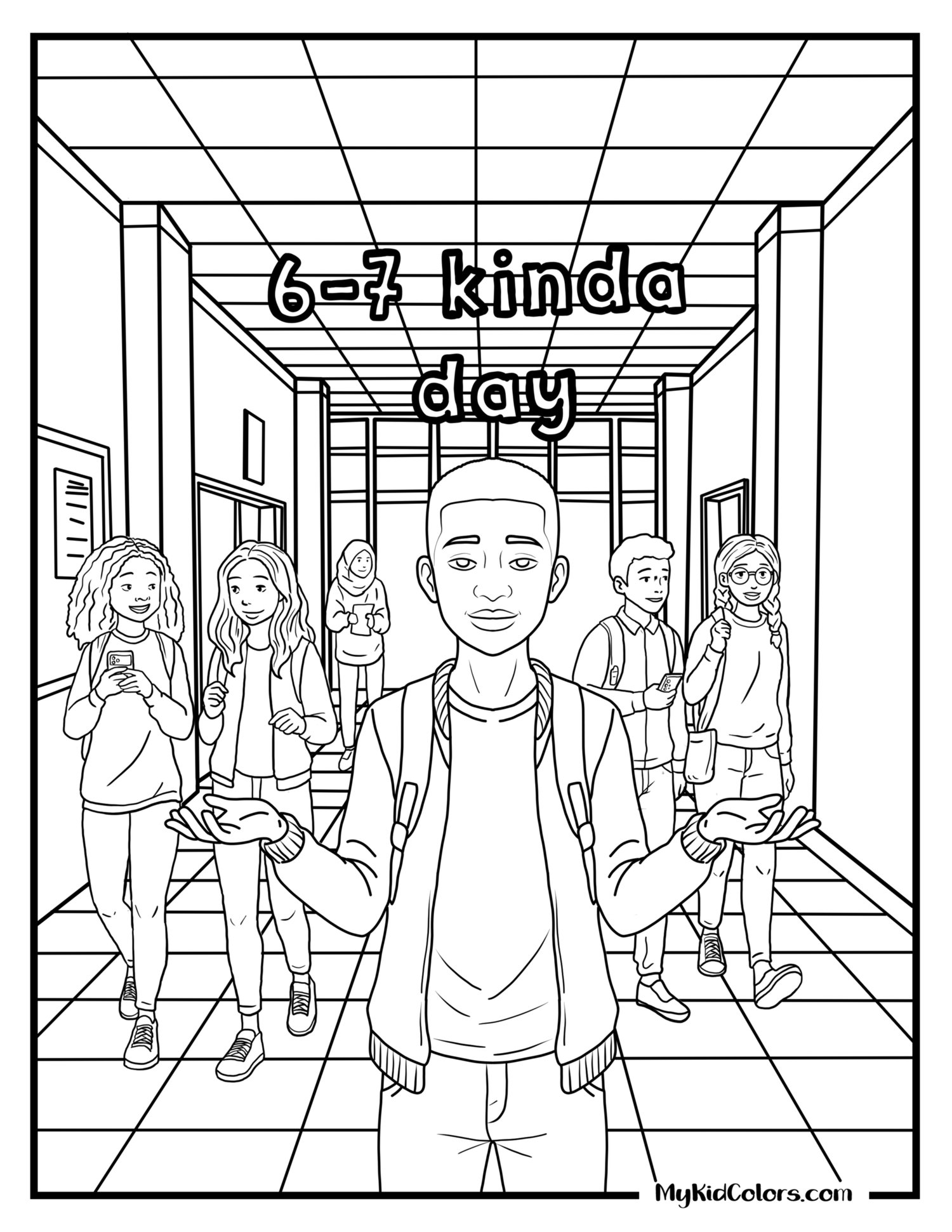 - Student shrugging in a crowded hallway: “6–7 kinda day”