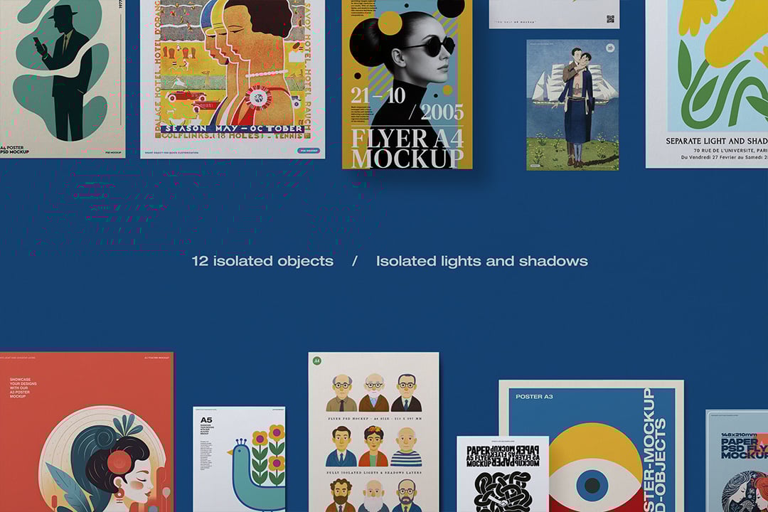 Poster Mockup Set - A3, A4 & A5 Flat-Lay (12 Objects)