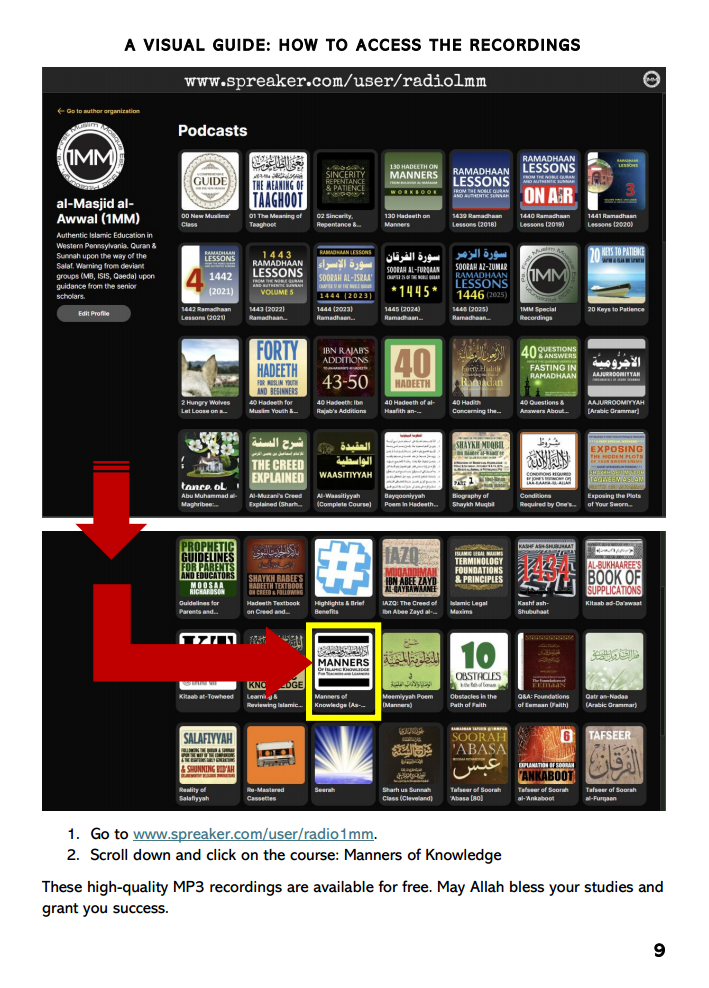 This workbook was not intended for independent self-study, rather students of Islamic knowledge study texts under scholars and qualified teachers. This effort is intended to assist you in such a study. If you cannot find any such scholar or qualified teacher explaining this text, then you may opt to study the classes I teach at Masjid as-Sahaaba in Columbus Ohio. The recordings of those ongoing classes are being made available in different ways: