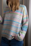 This sweater is a blank canvas for your favorite colors. You can create a rainbow of cheerful stripes or combine subtle, earthy tones. It also makes a great stashbusting project! Featuring a relaxed, oversized fit and modified drop sleeves, it’s also easy to pair with almost anything.