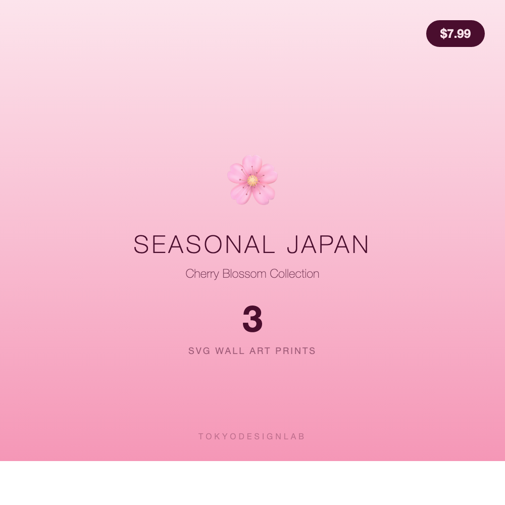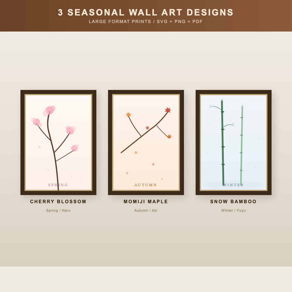 Seasonal Japan Wall Art 3-Pack | Cherry Blossom Spring SVG Prints | Minimalist Japanese Decor