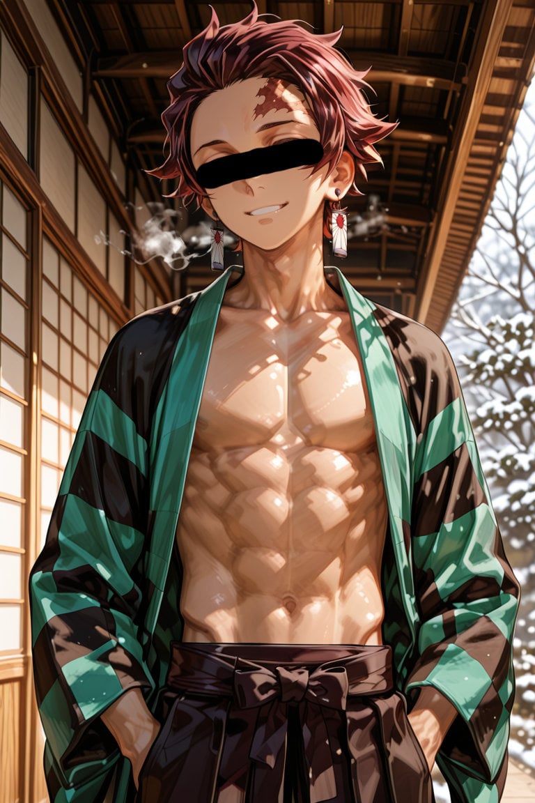 日本の正月をテーマに、着物を着用している男性を、キャラクターごとにお任せ作成しました。男らしいキャラクターの魅力を思い切って表現しました。