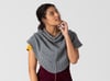 Camryn is a generous cozy cowlette worked up in plush slip-stitch patterning. The cowlette starts with a flat semi-circle that is joined to work in the round to finish it up. The cast-on at the beginning is folded and sewn together to close up the front of the cowlette. A simple picot bind-off makes for a handsome finished edge.
