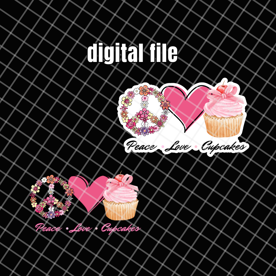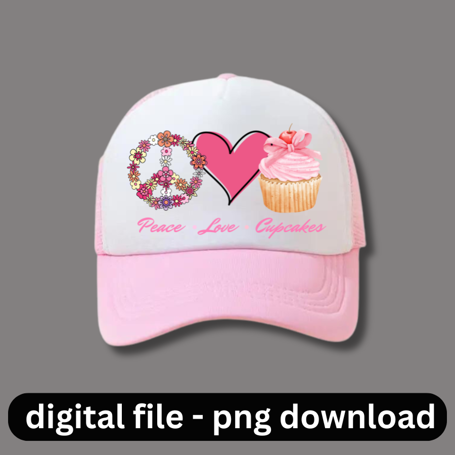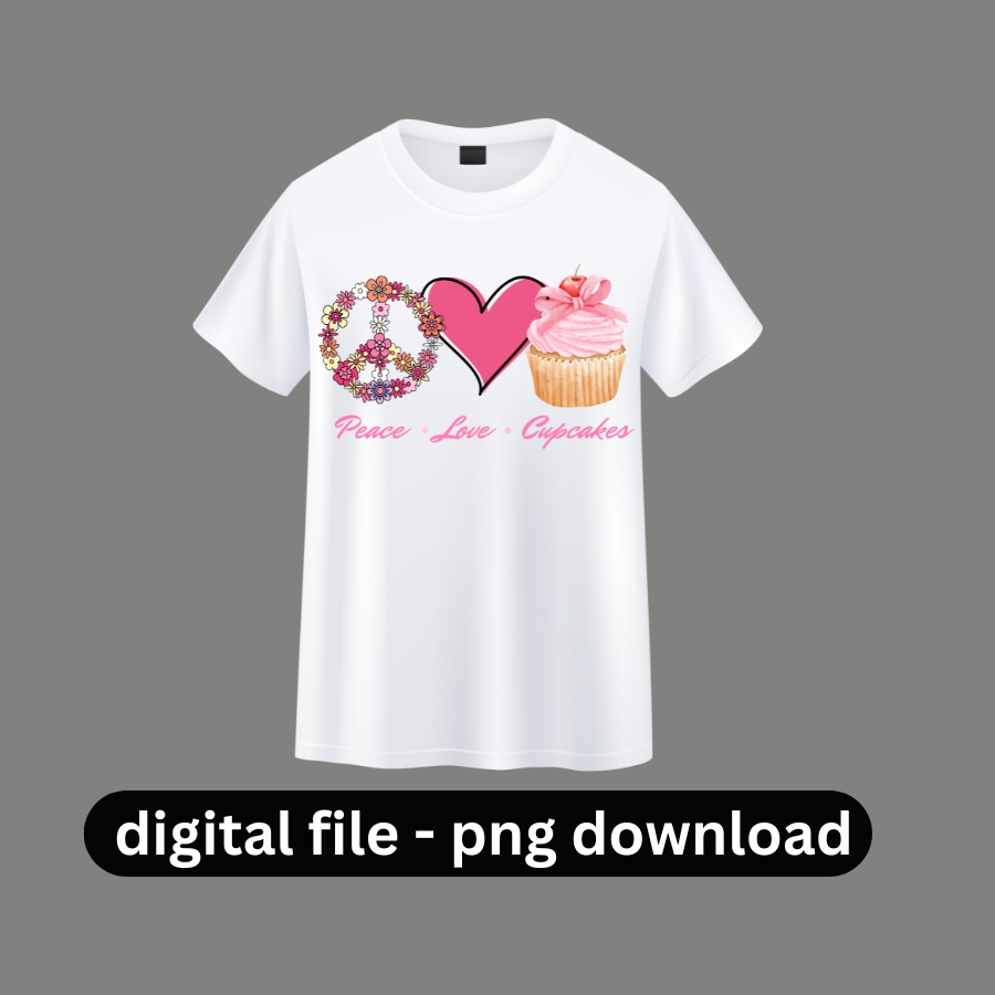 Peace, Love, Cupcakes Digital Png - transparent design / Cute - Coquette digital png file / t-shirt design / DTF / UVDTF transfer file