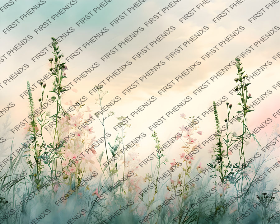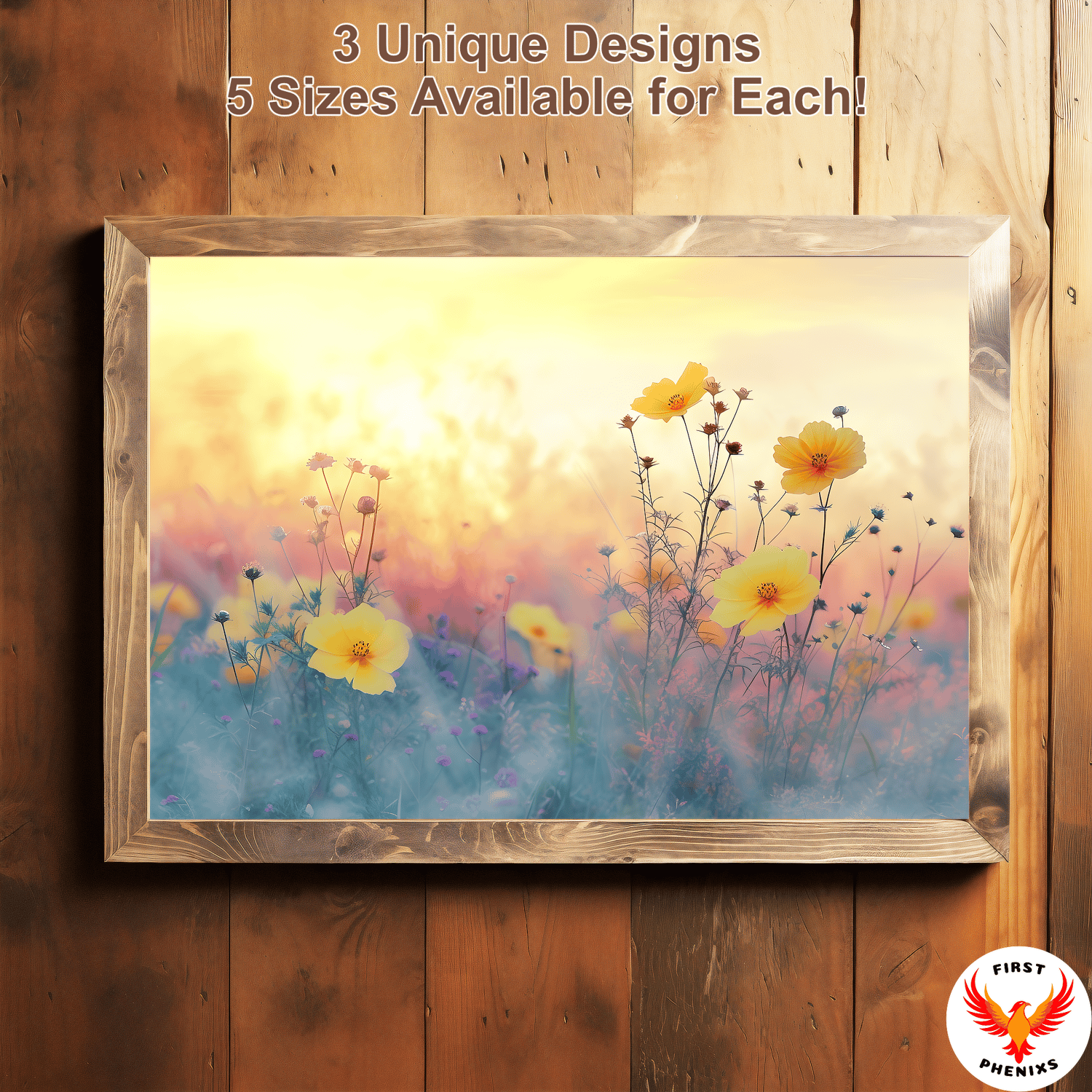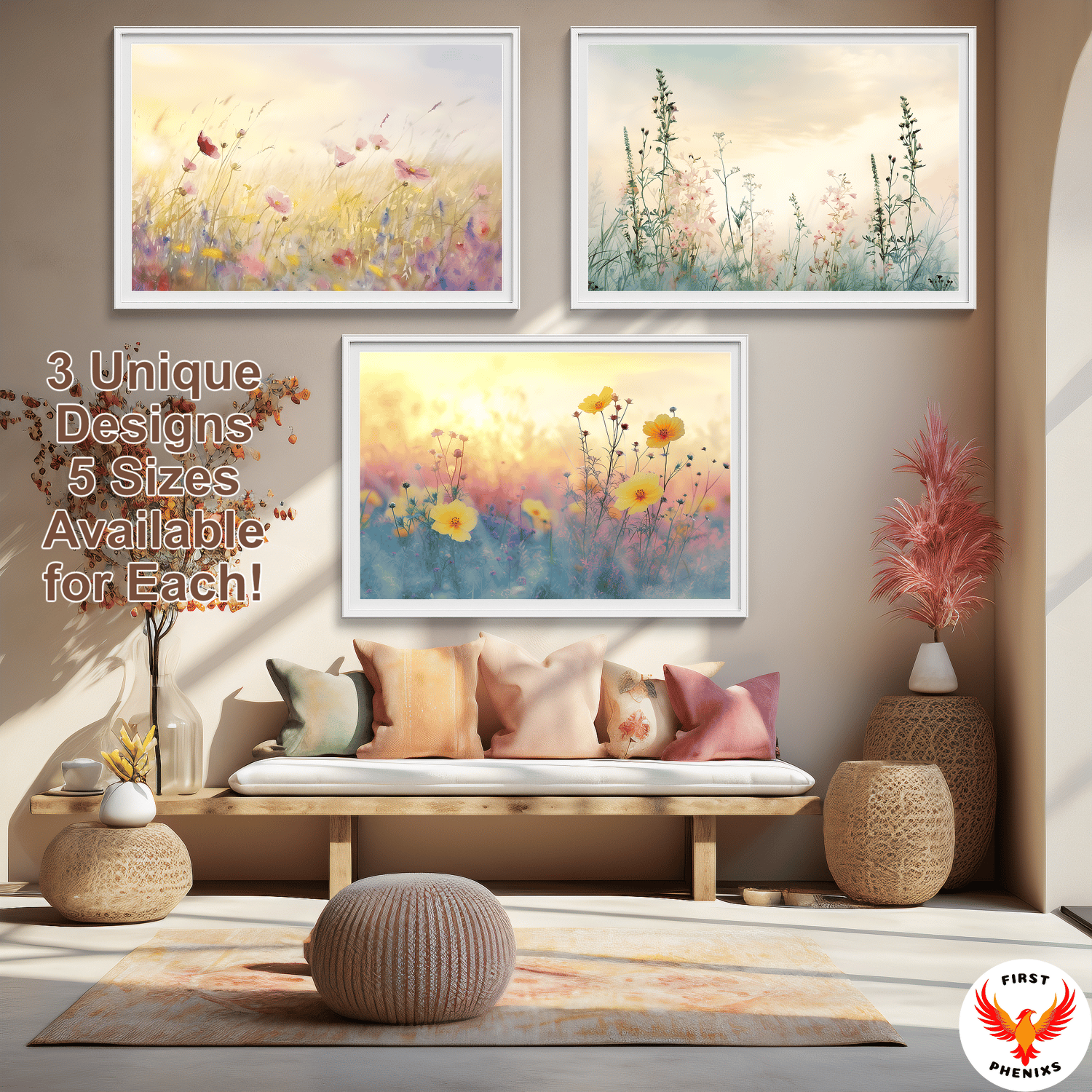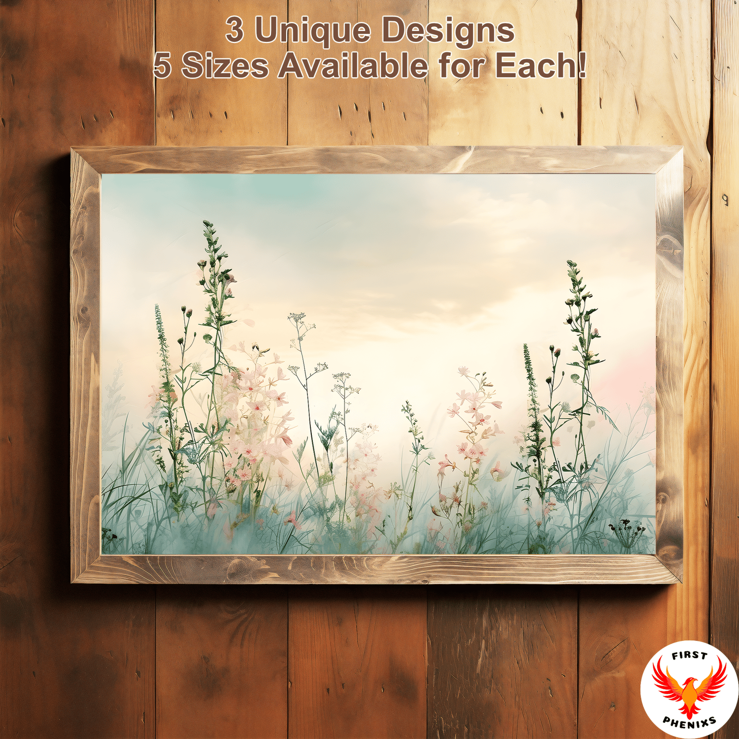 Morning Meadow Wall Decor - Downloadable Set, Creating Serene Landscape Art - Wildflower Watercolor