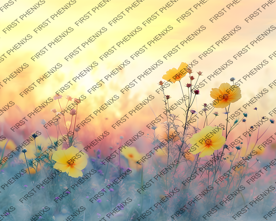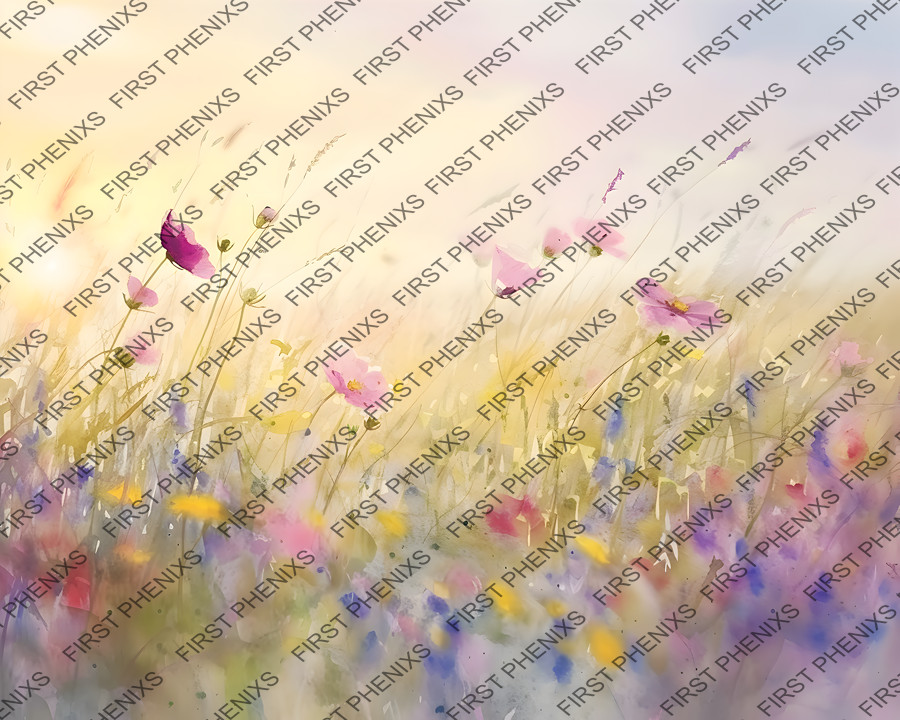 watercolor meadow, floral wall art, morning light decor, serene landscape, wildflower digital, meadow poster, cool tone print, dawn artwork, printable flowers, nature scenery, botanical illustration, tranquil field, sunrise download