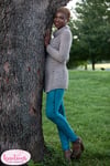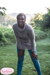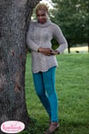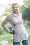 A close-fitting pullover with waist shaping, set-in sleeve construction and a cozy turtleneck, and a lace pattern on the center front and back, this sweater works up quickly, is delightfully soft and is perfect for lounging by the fireside on brisk fall and winter afternoons. The gauge is large enough that it will work up quickly and you’ll be wearing it before very long.