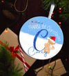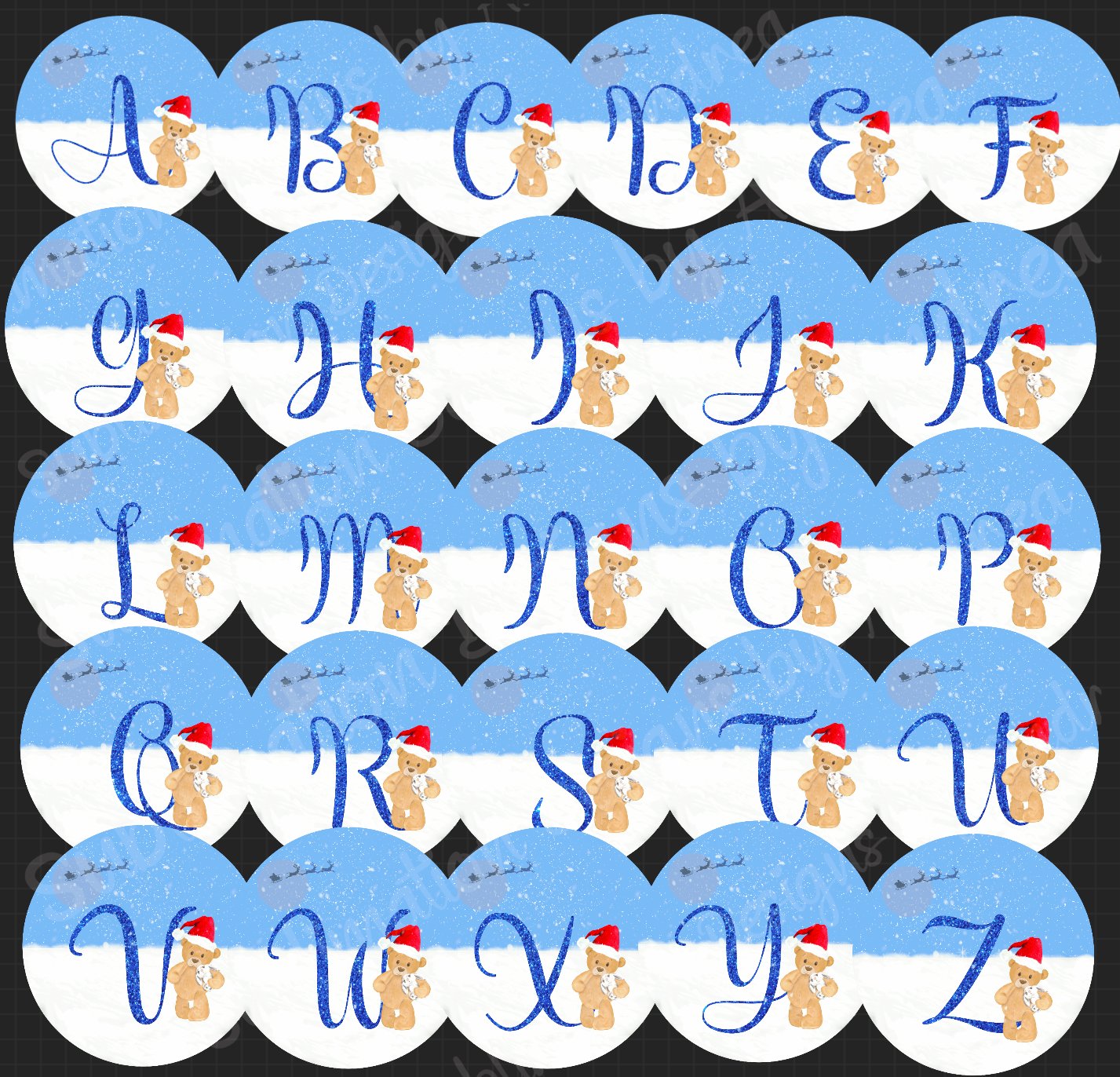 Blue glitter alphabet design for round ornaments, with hand painted bear and his cuddly toy. This file comes with 2 free text files - "Happy 1st Christmas" and "Happy Christmas"