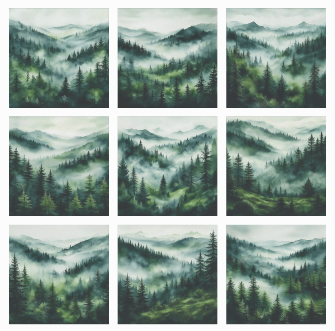 9 high-quality and distinctive. artworks.Appalachian Mountains Misty Pine Trees Art Painting, Vintage Landscape, Vintage Landscape Art Print, Country Field Wall Art, Botanical Art Poster, Appalachian Mountains Forest Prints Pine Trees.