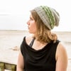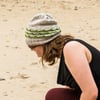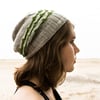 This slouchy, stylish hat has a sizzling line of garter stitch that’s dotted at intervals with pointed archways. This hat coordinates well with a lot of other accessories because of the garter stitch accents.