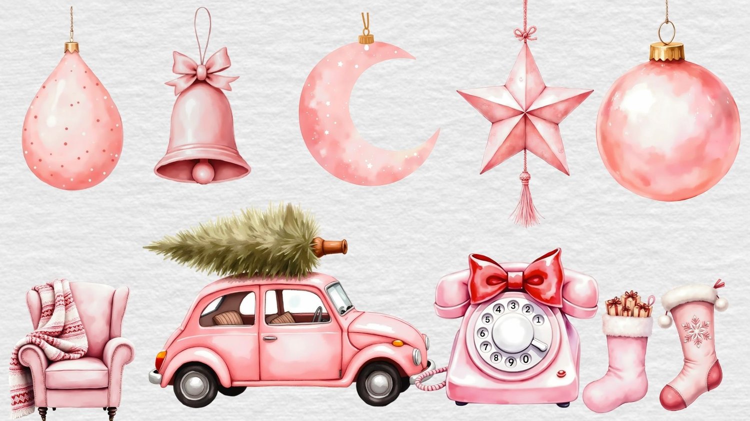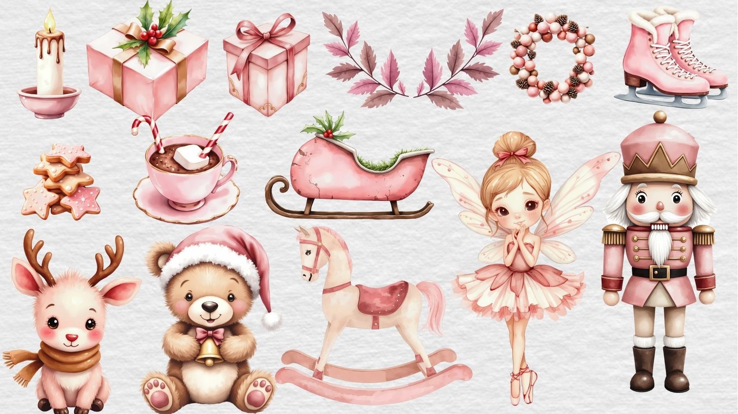 Perfect for crafters and designers or for anyone who wants to put their own personal Christmas design together, this set is your ultimate toolkit for creating beautiful Christmas cards, heartfelt invitations, enchanting gifts and so much more. Whether you're making personalized gifts, decorating your home, or crafting products to sell in your shop, this pink Christmas Clipart set is the secret ingredient that will make your holiday projects shine.