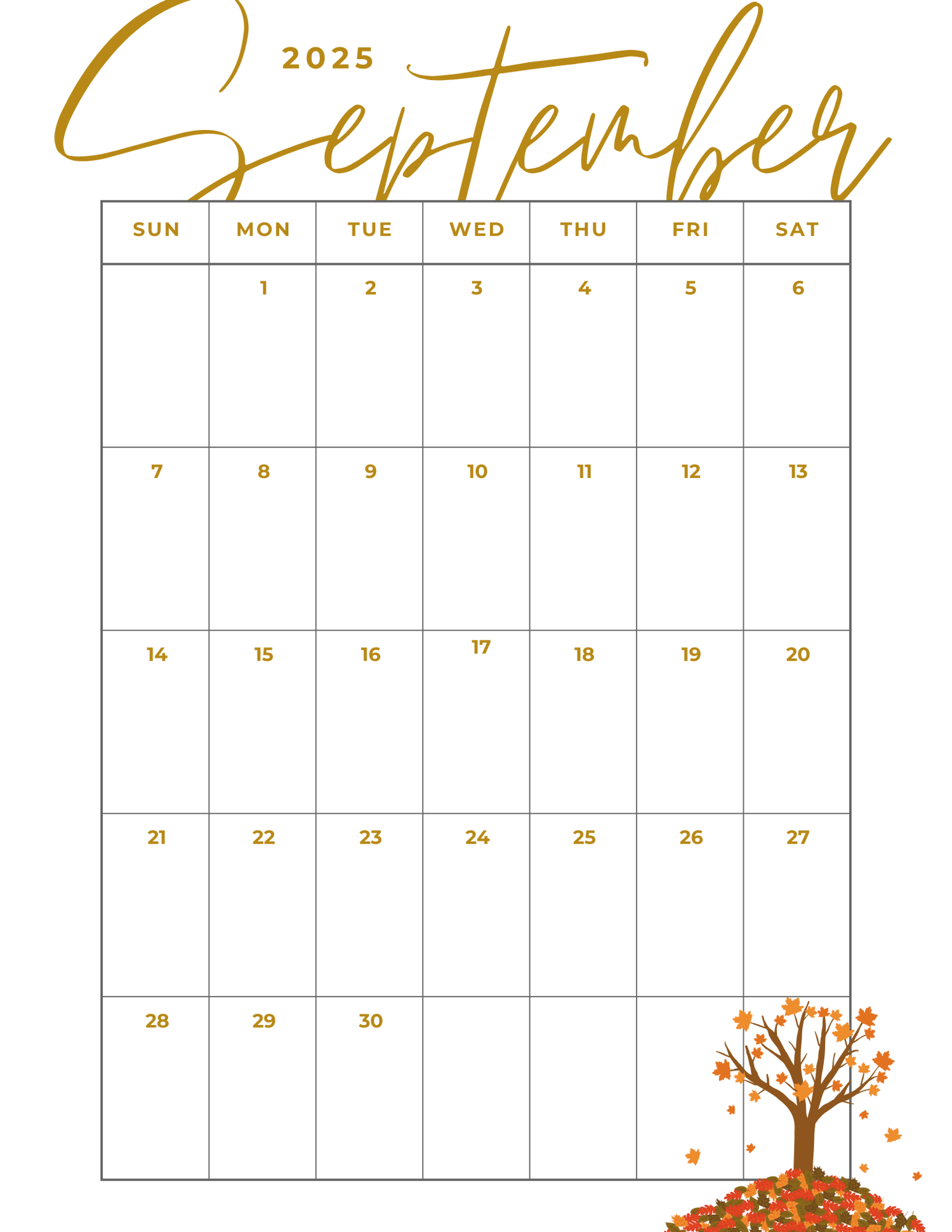🍂 Monthly Calendars (Sept–Dec) with clickable tabs for easy navigation
