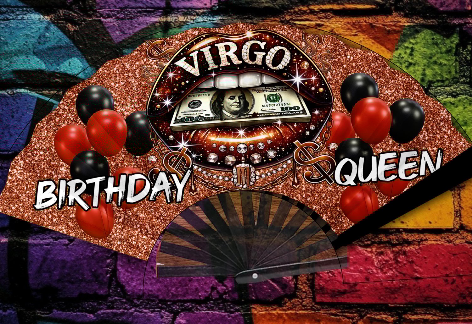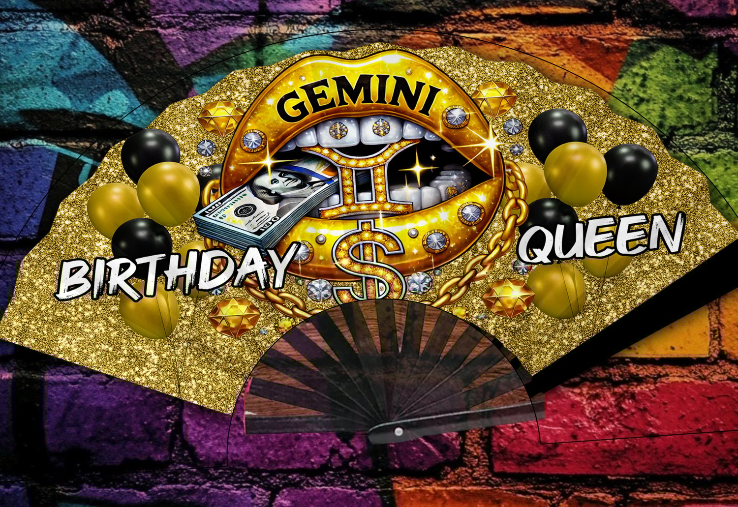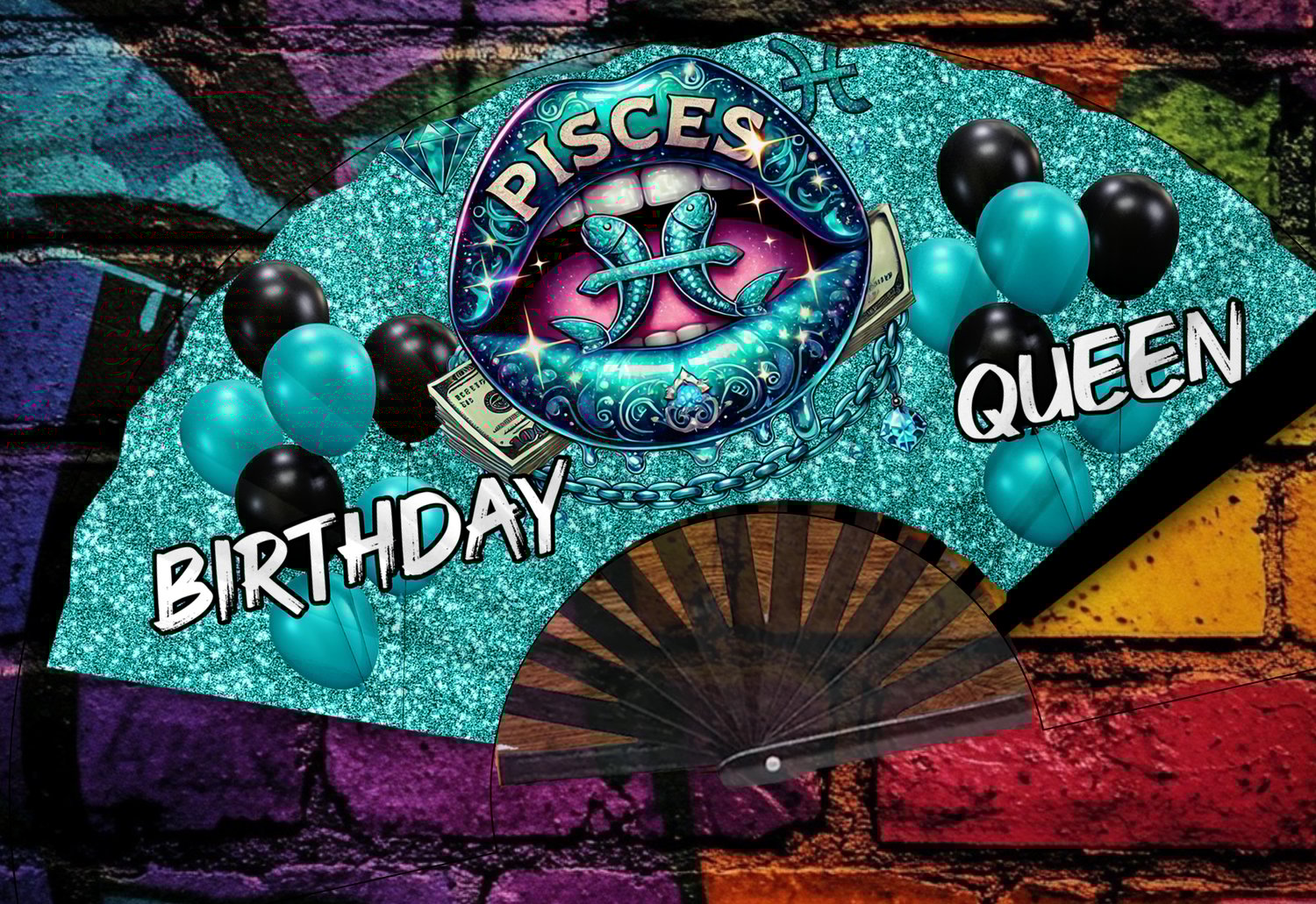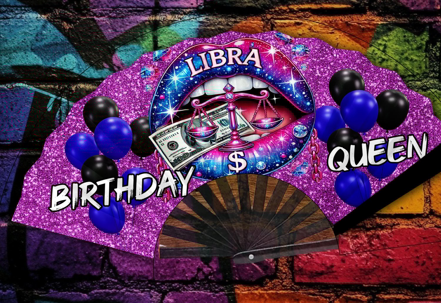 Zodiac Birthday Queen Fan Bundle + Bonus Design | 13 PNGs | Glitter Digital Clack Fan Wrap | Instant Download