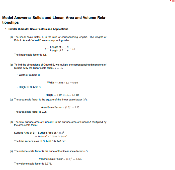 IGCSE Extended Level Maths: Solids and the Linear, Area, Volume Relationship (Worksheet & Model Answers)