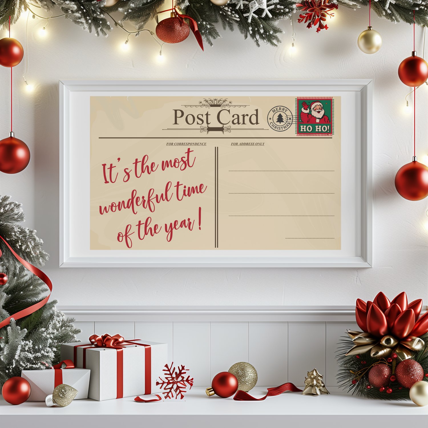 Bring a touch of nostalgic holiday charm into your home with this Vintage Christmas Postcard Wall Art Printable. Designed to look like a retro postcard, this festive print features the classic holiday phrase “It’s the most wonderful time of the year!” The warm tones and vintage stamp details make it perfect for traditional, cozy, farmhouse, or cottage-style Christmas décor.
