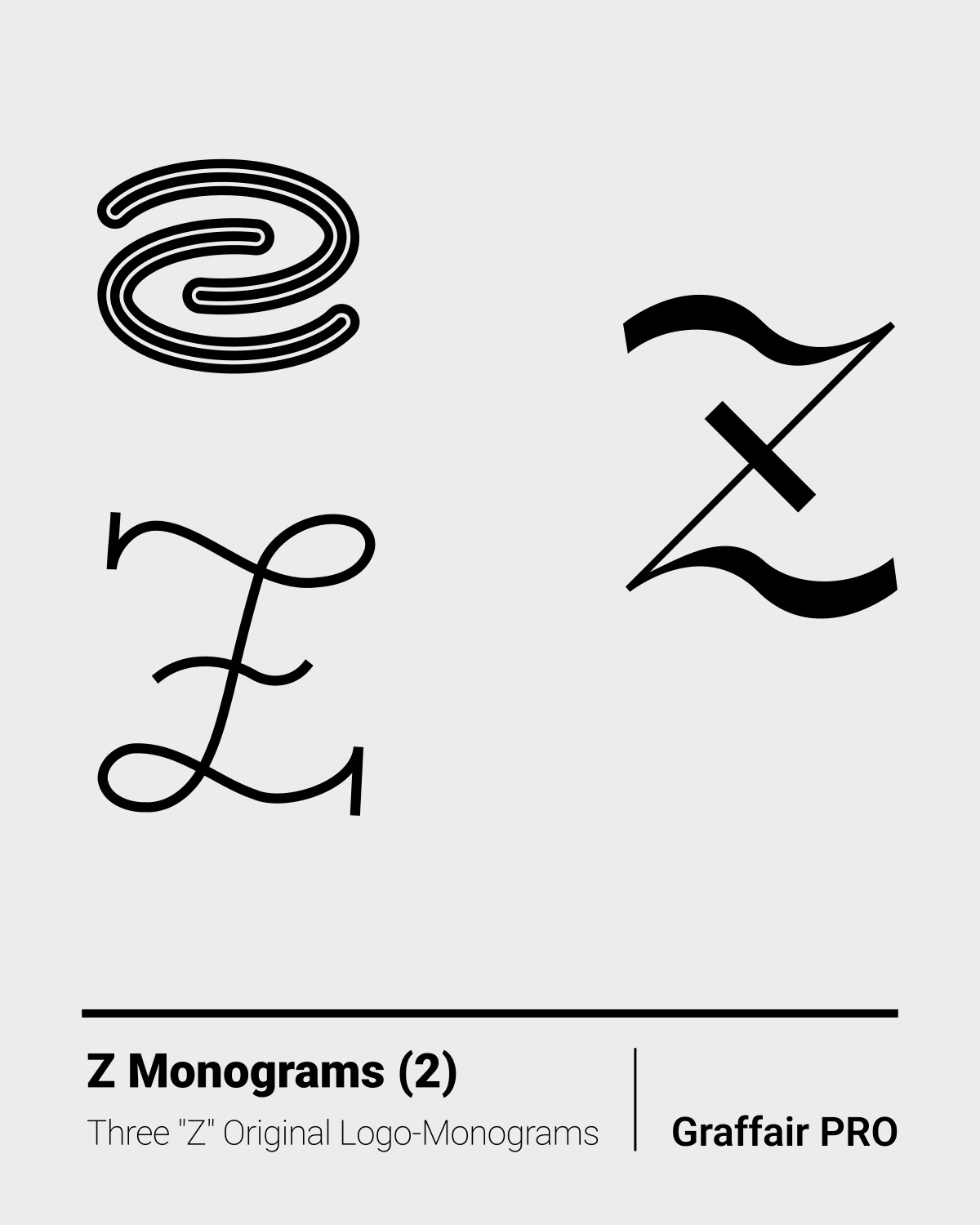 Z Monograms (2): The 2nd set of three original "Z" logo-monograms, included in the "1050 SVG Monograms" super bundle, amongst others, which also features an Index catalog.