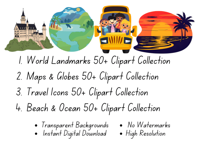 Travel & Adventure Clipart Bundle Collection | 12x12 Inches | High-Resolution Digital Printables | Instant Download