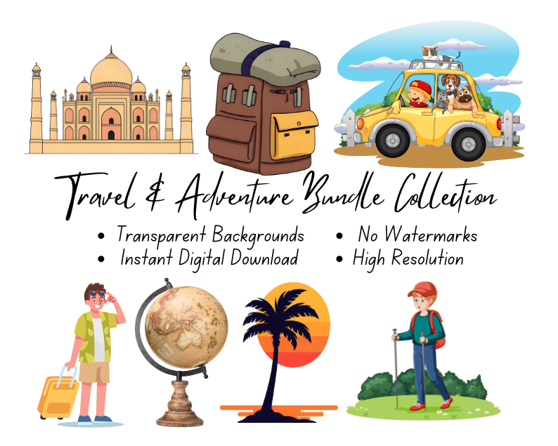 Embark on a creative journey with the Travel & Adventure Bundle Collection, a stunning set of 500+ high-quality cliparts designed to bring your projects to life. Whether you're crafting travel planners, scrapbooks, invitations, or educational materials, this bundle has everything you need to capture the essence of exploration and adventure.