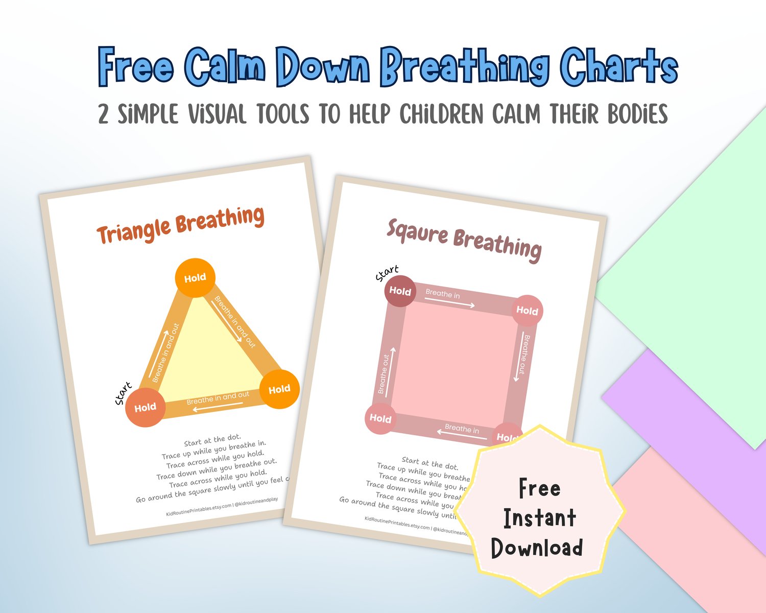 Print the charts and place them in a calm down area, routine binder, or on the wall. Use them during moments of stress, frustration, or overwhelm to help children slow their breathing and feel safe.