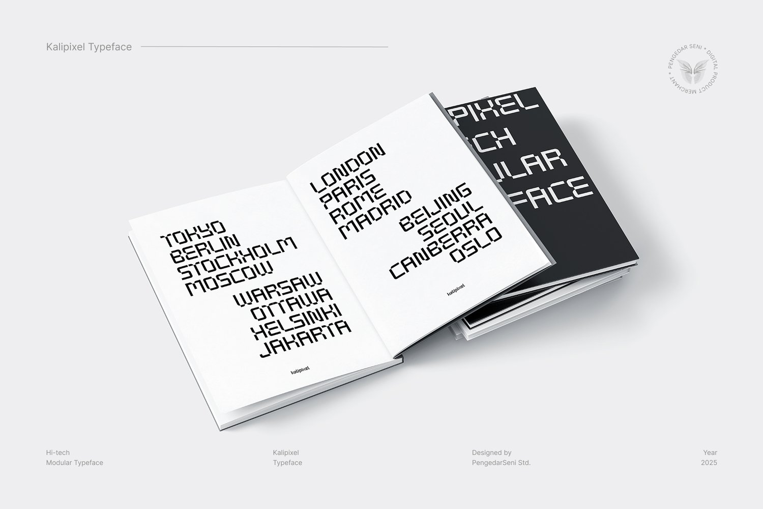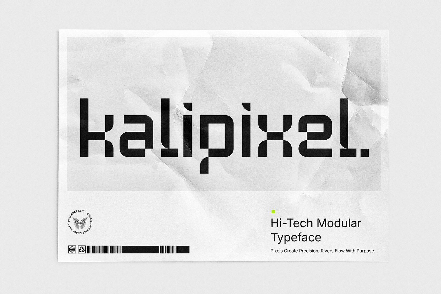 "Kali" (Flow & Adaptability) – Inspired by the seamless movement of a river, its rounded edges symbolize flexibility and innovation in typography. "Pixel" (Digital Structure & Precision) – As the building block of digital visuals, pixels define clarity, modularity, and structured form. This combination results in a bold, future-forward typeface—ideal for brands, creators, and designers who want to make a powerful, tech-driven impact.