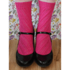 The patterns in the Knit Night Collection are named after a few of my favourite knitty people. All the socks in the collection come in three sizes (finished sock circumferences, 17.5 (20, 22.5) cm [7 (8, 9) in]), with the different sizes being created by scaling the pattern, so larger socks have larger motifs. The patterns in the collection are written to be needle-neutral and can be knitted on any of DPNs, short circulars or long circulars using the magic loop technique.